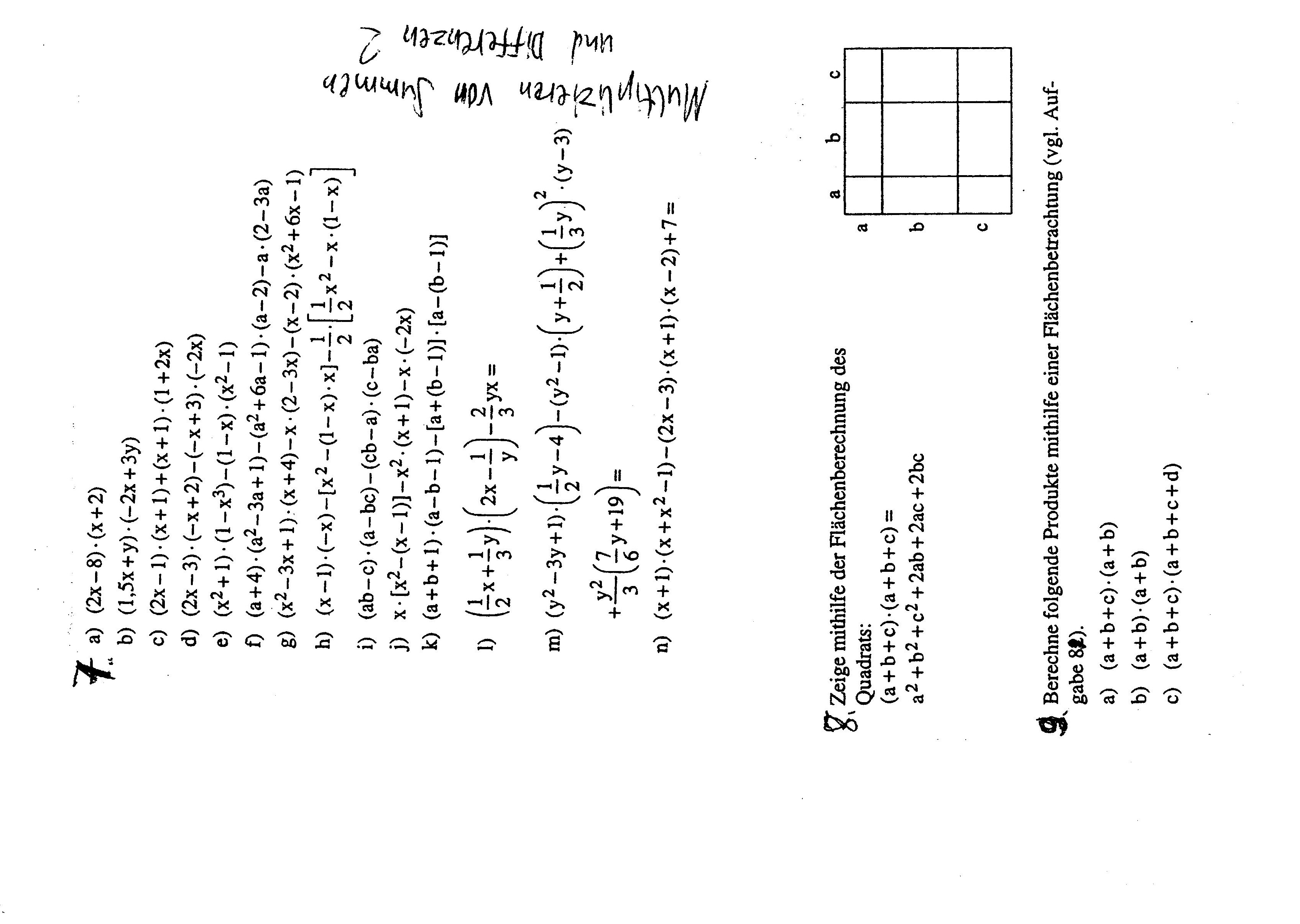 | Übungsblätter: | Multiplizieren von Summen 1, 2 |