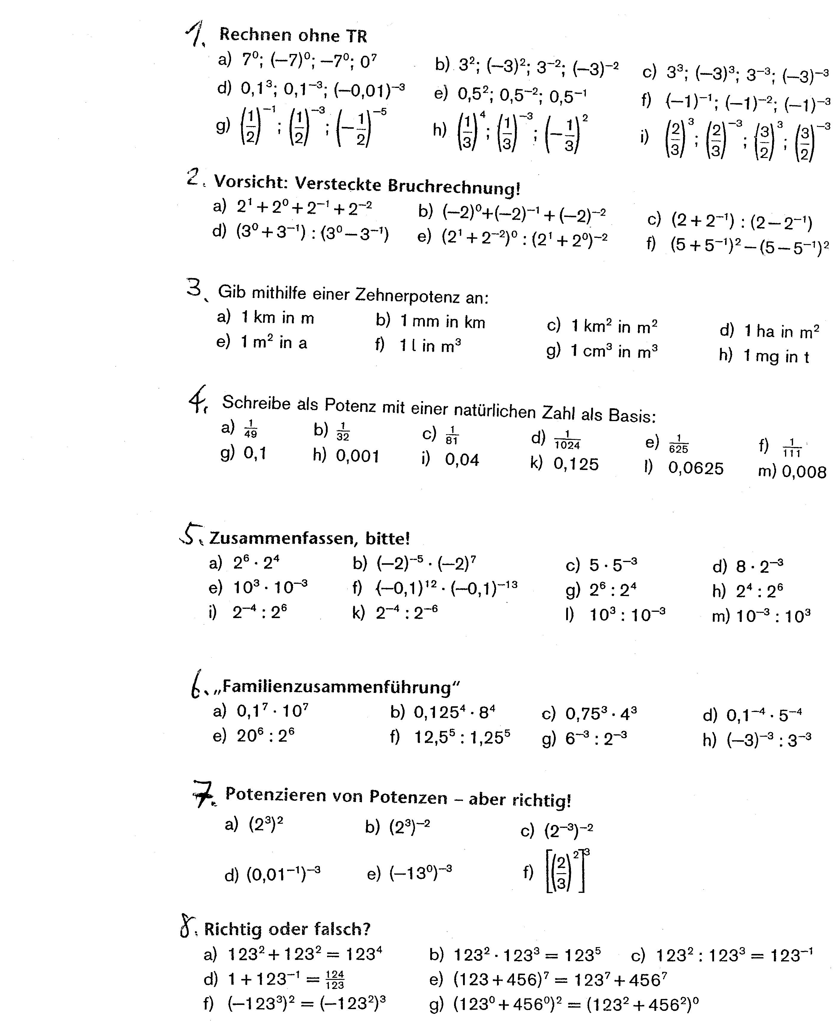 | Übungen: | Potenzen mit negativen Exponenten, wissenschaftliche Schreibweise, Lösungen dazu |